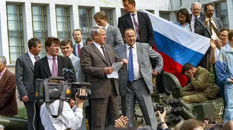 Tüm bunlar olurken Moskova’da yaşananları sessizce bir kenarda izleyen ve mevcut sistemin korunmasından yana taraf olan muhafazakarlar daha fazla sessiz kalmanın doğru olmayacağını düşünerek harekete geçme kararı aldı. Hükümet ve ordudaki radikal komünistler 18 Ağustos 1991’de Gorbaçov’u Kırım’daki tatil villasında ev hapsine aldılar. Darbe liderleri, Gorbaçov’un ‘sağlık nedenleriyle başkanlık görevlerini yerine getiremediğini’ ilan ederek olağanüstü hal ilan ettiler. Ancak geç kaldıklarını kısa sürede anladılar. Tanklar Moskova sokaklarına indiğinde binlerce Rus vatandaşı, Beyaz Saray olarak bilinen Rus Parlamentosu’nu korumak için sokaklara indi. Rus Parlamentosu önünde bir tankın üzerine çıkan Yeltsin, burada yaptığı meydan okumayla darbeye karşı direnişin öncülerinden biri oldu.